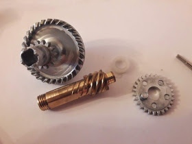 Ведущая шестерня опирается на два подшипника. Ведомая-на подшипник и отлив в корпусе катушки, что является причиной небольшого люфта, который на мой взгляд со временем будет только увеличиваться.